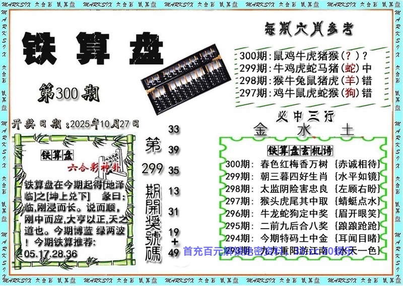 | 301期:七肖 | 马龙兔鸡虎羊牛 | 开:牛05 |