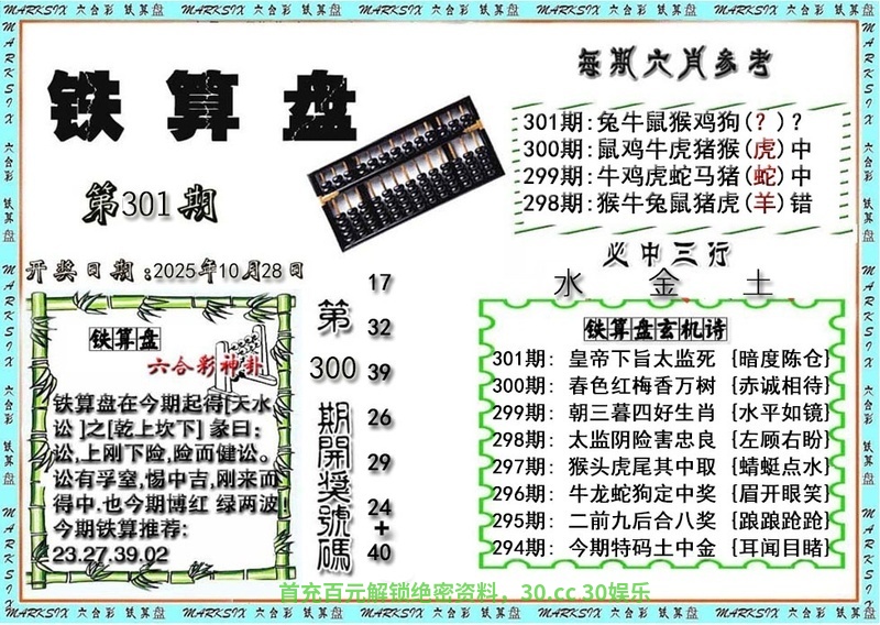 | 301期:吉凶两肖【吉美+虎鼠】开:牛05错 |